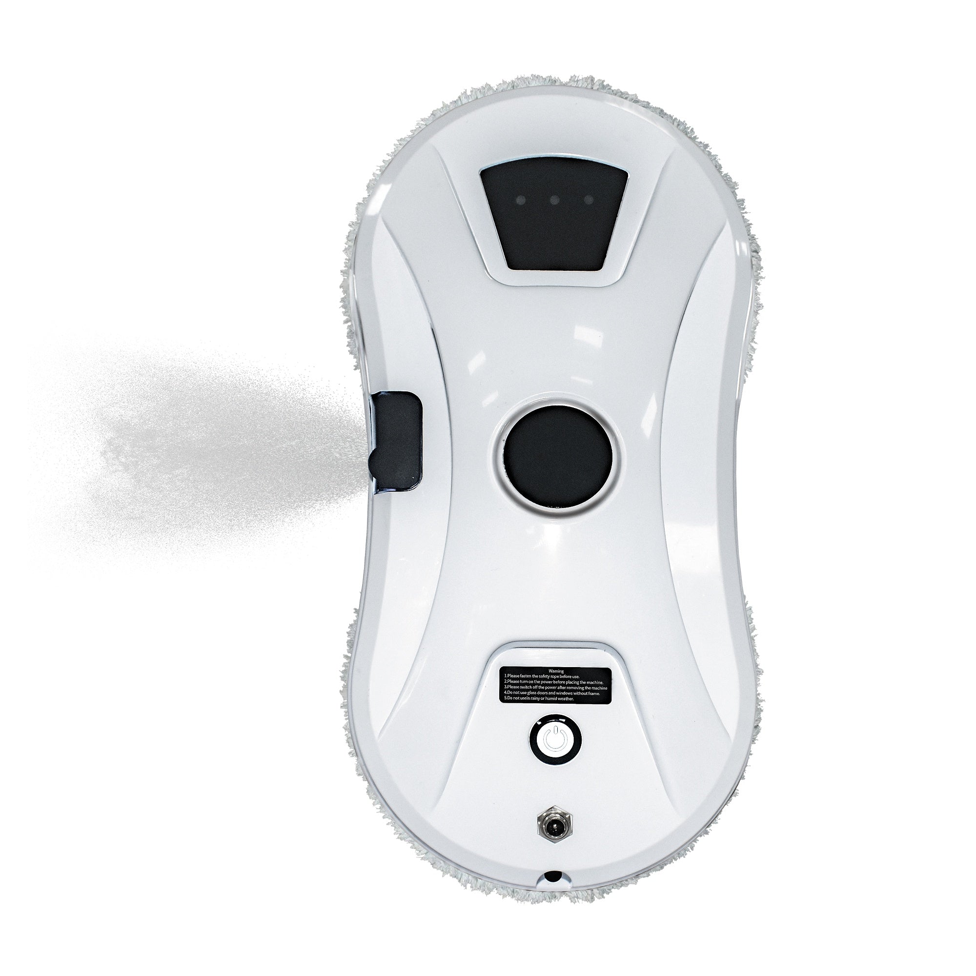 This automated cleaning unit features an oval-shaped body with a flat body and cleaning pads attached to the bottom. The top of the device includes a power button. A visible power port is located near the bottom edge of the body.